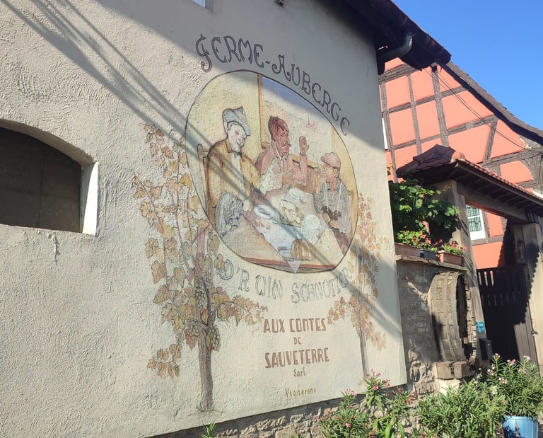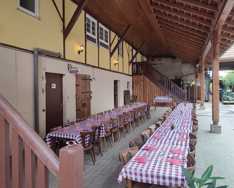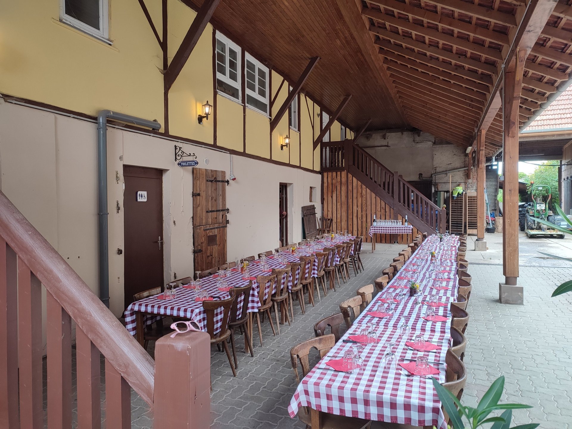 Notre cœur de métier, vous accueillir et vous faire passer un bon moment autour de bons petits plats alsaciens issus de notre terroir et accompagnés par du vin bio produit sur place dans notre ferme.